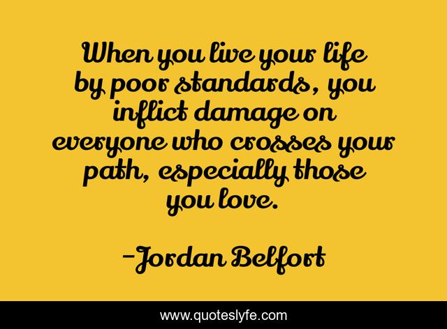 This page presents the quote "When you live your life by poor standards, you inflict damage on everyone who crosses your path, especially those you love.". Author of this quote is Jordan Belfort. This quote is about success, life, love, motivation, affection,.