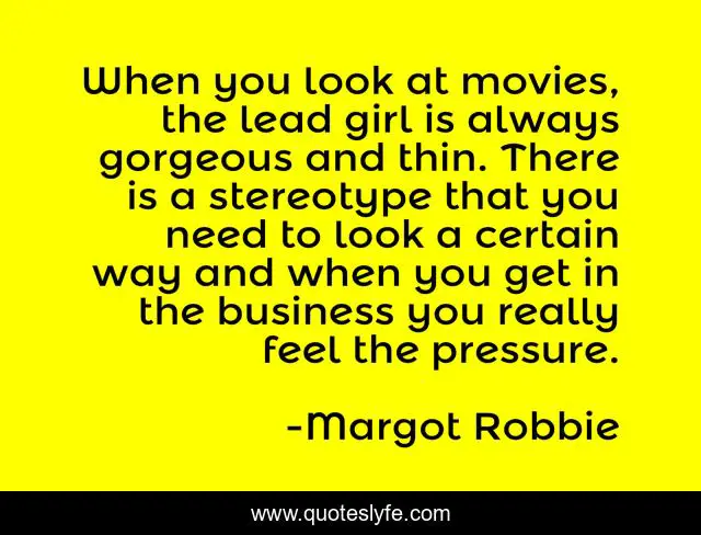 This page presents the quote "When you look at movies, the lead girl is always gorgeous and thin. There is a stereotype that you need to look a certain way and when you get in the business you really feel the pressure.". Author of this quote is Margot Robbie. This quote is about pressure, girl, business,.