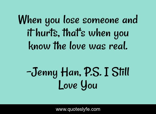"Jenny Han, P.S. I Still Love You Quotes." Quoteslyfe.com, 2025. Mon. 08 Dec. 2025. <https://www.quoteslyfe.com/quote/When-you-lose-someone-and-it-hurts-122796>.