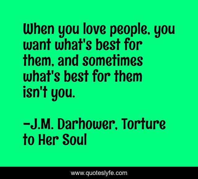 This page presents the quote "When you love people, you want what's best for them, and sometimes what's best for them isn't you.". Author of this quote is J.M. Darhower, Torture to Her Soul. .
