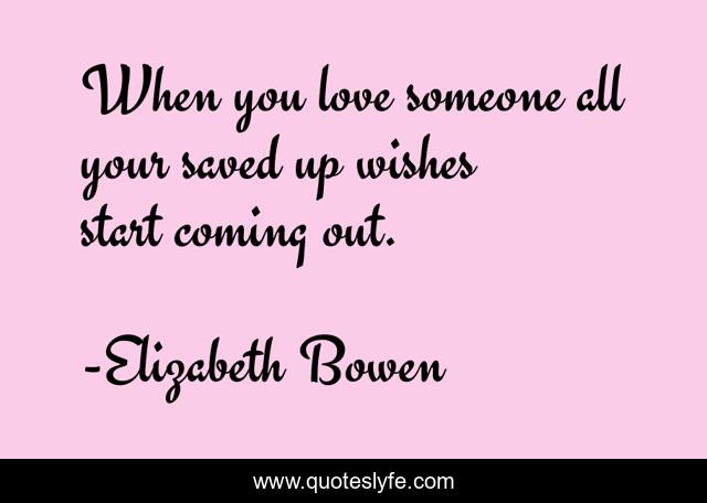 This page presents the quote "When you love someone all your saved up wishes start coming out.". Author of this quote is Elizabeth Bowen. This quote is about start, love, affection,.