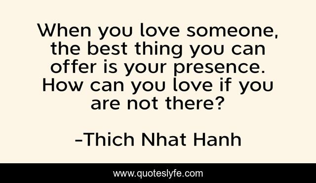 This page presents the quote "When you love someone, the best thing you can offer is your presence. How can you love if you are not there?". Author of this quote is Thich Nhat Hanh. This quote is about love, affection, presence,.