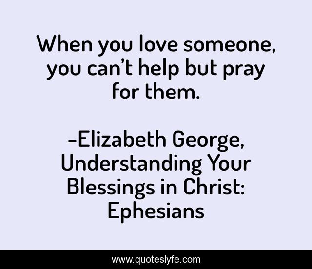 This page presents the quote "When you love someone, you can’t help but pray for them.". Author of this quote is Elizabeth George, Understanding Your Blessings in Christ: Ephesians. This quote is about love, pray, god, elizabeth-george, christianity, blessings, prayer, affection,.