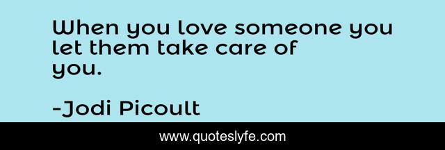 This page presents the quote "When you love someone you let them take care of you.". Author of this quote is Jodi Picoult. This quote is about love, affection,.