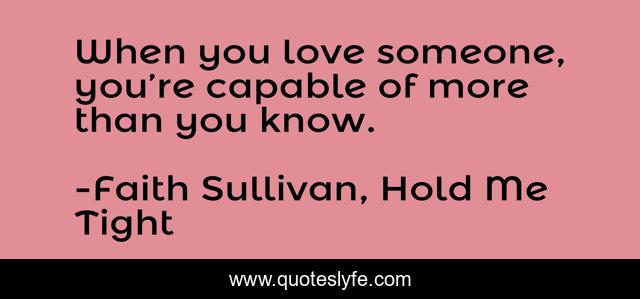 "Faith Sullivan, Hold Me Tight Quotes." Quoteslyfe.com, 2025. Fri. 05 Dec. 2025. <https://www.quoteslyfe.com/quote/When-you-love-someone-you-re-capable-155308>.