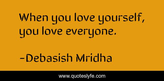 This page presents the quote "When you love yourself, you love everyone.". Author of this quote is Debasish Mridha. This quote is about life, love, knowledge, inspirational, intelligence, philosophy, wisdom, quotes, affection,.