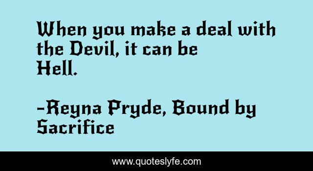 This page presents the quote "When you make a deal with the Devil, it can be Hell.". Author of this quote is Reyna Pryde, Bound by Sacrifice. This quote is about hell, devil, satan,.