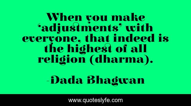 This page presents the quote "When you make ‘adjustments’ with everyone, that indeed is the highest of all religion (dharma).". Author of this quote is Dada Bhagwan. This quote is about religion, spiritual, adjustment,.