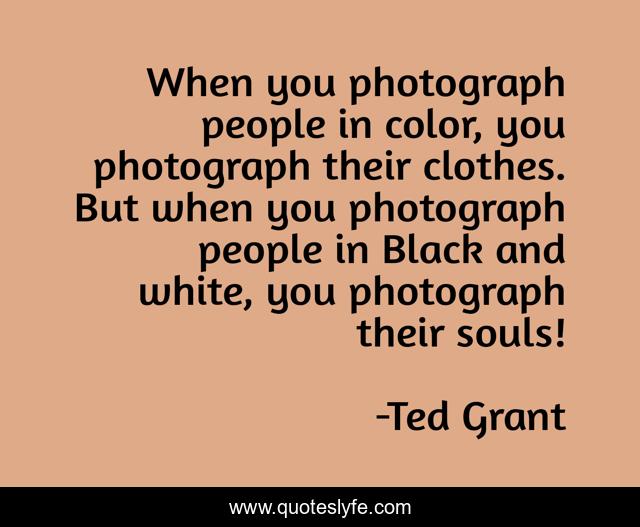 This page presents the quote "When you photograph people in color, you photograph their clothes. But when you photograph people in Black and white, you photograph their souls!". Author of this quote is Ted Grant. This quote is about color, black-and-white, photography, street-photography,.