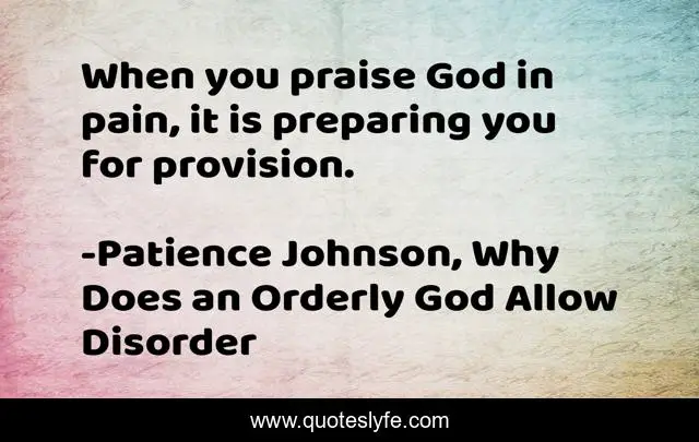 "Patience Johnson, Why Does an Orderly God Allow Disorder Quotes." Quoteslyfe.com, 2025. Mon. 08 Dec. 2025. <https://www.quoteslyfe.com/quote/When-you-praise-God-in-pain-it-20610>.