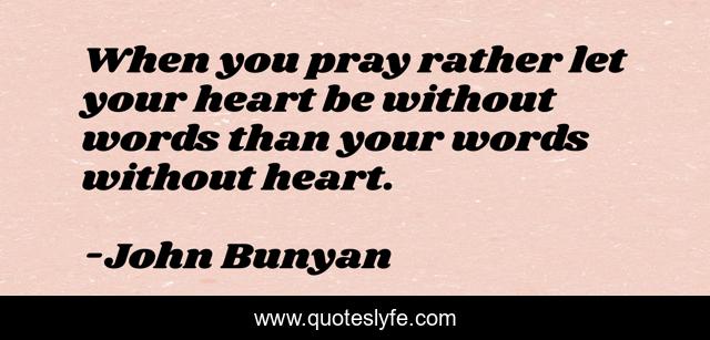 This page presents the quote "When you pray rather let your heart be without words than your words without heart.". Author of this quote is John Bunyan. .