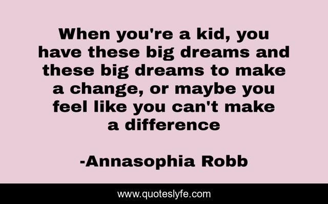 This page presents the quote "When you're a kid, you have these big dreams and these big dreams to make a change, or maybe you feel like you can't make a difference". Author of this quote is Annasophia Robb. This quote is about enthusiasm, inspirational,.