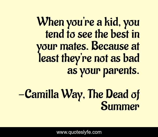 This page presents the quote "When you're a kid, you tend to see the best in your mates. Because at least they're not as bad as your parents.". Author of this quote is Camilla Way, The Dead of Summer. .