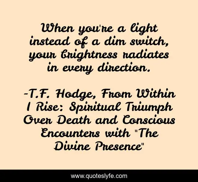 "T.F. Hodge, From Within I Rise: Spiritual Triumph Over Death and Conscious Encounters with "The Divine Presence" Quotes." Quoteslyfe.com, 2025. Sat. 06 Dec. 2025. <https://www.quoteslyfe.com/quote/When-you-re-a-light-instead-of-95323>.