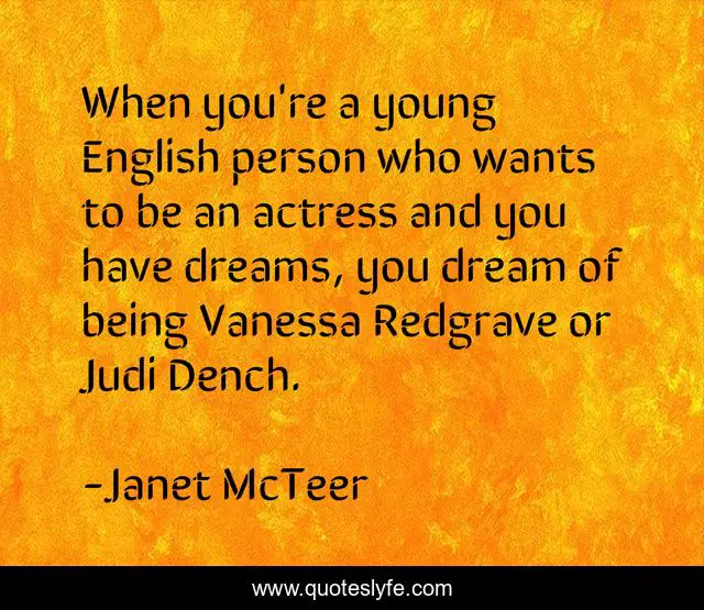 This page presents the quote "When you're a young English person who wants to be an actress and you have dreams, you dream of being Vanessa Redgrave or Judi Dench.". Author of this quote is Janet McTeer. This quote is about dream, young,.