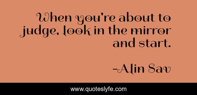 This page presents the quote "When you're about to judge, look in the mirror and start.". Author of this quote is Alin Sav. This quote is about enthusiasm, spiritual, leadership, inspirational,.