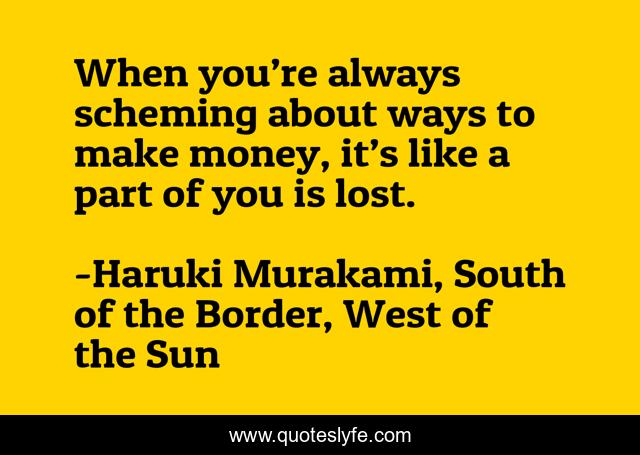 This page presents the quote "When you’re always scheming about ways to make money, it’s like a part of you is lost.". Author of this quote is Haruki Murakami, South of the Border, West of the Sun. .