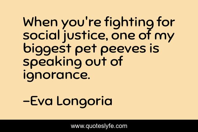 This page presents the quote "When you're fighting for social justice, one of my biggest pet peeves is speaking out of ignorance.". Author of this quote is Eva Longoria. This quote is about justice, ignorance,.