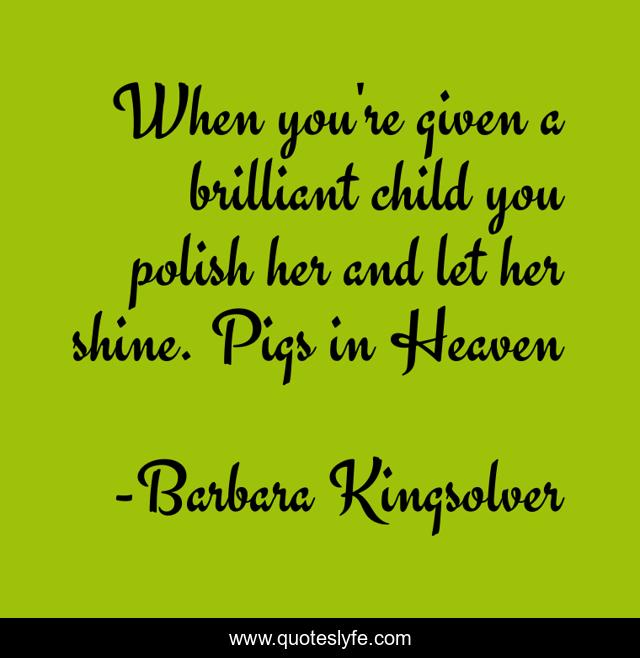 This page presents the quote "When you're given a brilliant child you polish her and let her shine. Pigs in Heaven". Author of this quote is Barbara Kingsolver. .