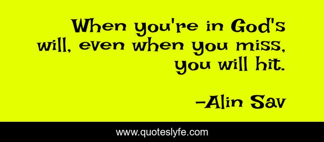 This page presents the quote "When you're in God's will, even when you miss, you will hit.". Author of this quote is Alin Sav. .