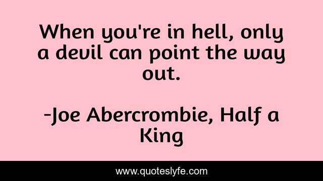 This page presents the quote "When you're in hell, only a devil can point the way out.". Author of this quote is Joe Abercrombie, Half a King. This quote is about hell, devil,.