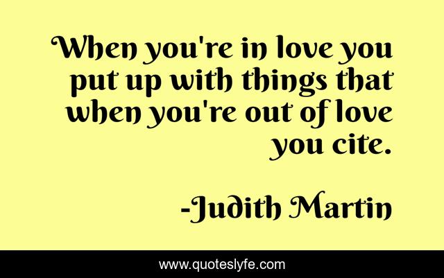 This page presents the quote "When you're in love you put up with things that when you're out of love you cite.". Author of this quote is Judith Martin. This quote is about positive, confidence,.