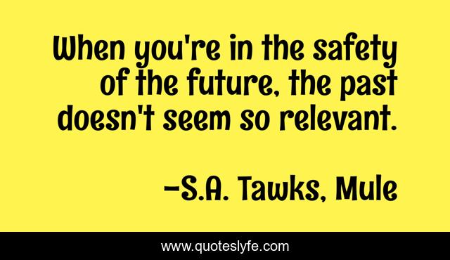 This page presents the quote "When you're in the safety of the future, the past doesn't seem so relevant.". Author of this quote is S.A. Tawks, Mule. This quote is about australia, bali, drugs, travel, indonesia, crime, adventure,.