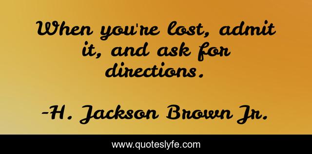 This page presents the quote "When you're lost, admit it, and ask for directions.". Author of this quote is H. Jackson Brown Jr.. .