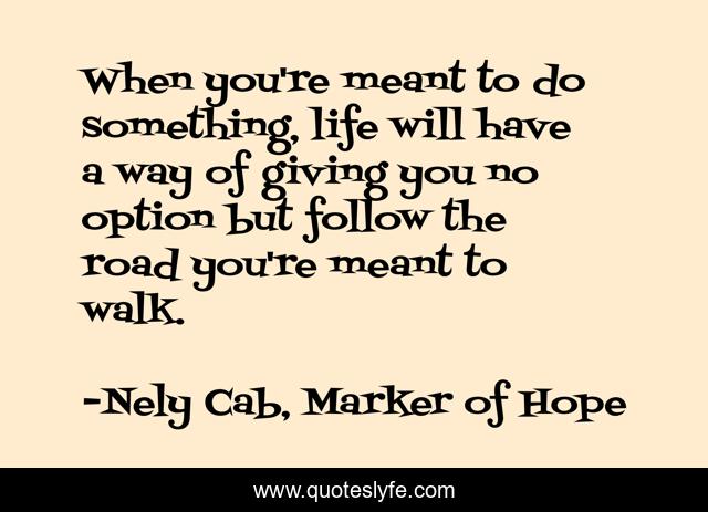 "Nely Cab, Marker of Hope Quotes." Quoteslyfe.com, 2025. Sat. 06 Dec. 2025. <https://www.quoteslyfe.com/quote/When-you-re-meant-to-do-something-82224>.