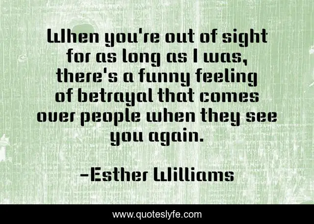 This page presents the quote "When you're out of sight for as long as I was, there's a funny feeling of betrayal that comes over people when they see you again.". Author of this quote is Esther Williams. This quote is about long, people,.