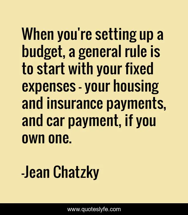 This page presents the quote "When you're setting up a budget, a general rule is to start with your fixed expenses - your housing and insurance payments, and car payment, if you own one.". Author of this quote is Jean Chatzky. This quote is about start, budget, insurance,.