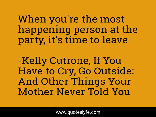 This page presents the quote "When you're the most happening person at the party, it's time to leave". Author of this quote is Kelly Cutrone, If You Have to Cry, Go Outside: And Other Things Your Mother Never Told You. This quote is about party, life, people,.