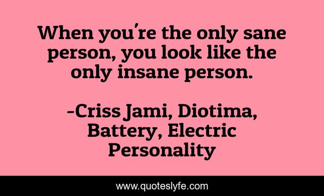 "Criss Jami, Diotima, Battery, Electric Personality Quotes." Quoteslyfe.com, 2025. Fri. 05 Dec. 2025. <https://www.quoteslyfe.com/quote/When-you-re-the-only-sane-person-5933>.