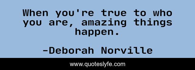 This page presents the quote "When you're true to who you are, amazing things happen.". Author of this quote is Deborah Norville. This quote is about things happen, true,.
