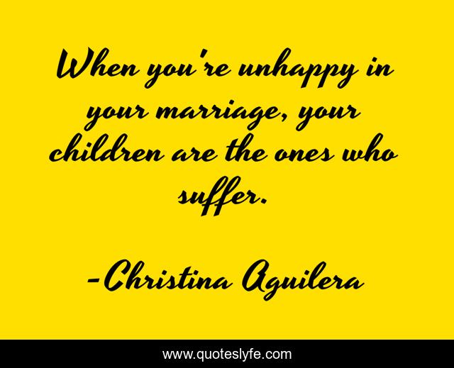 This page presents the quote "When you're unhappy in your marriage, your children are the ones who suffer.". Author of this quote is Christina Aguilera. This quote is about children, unhappy,.