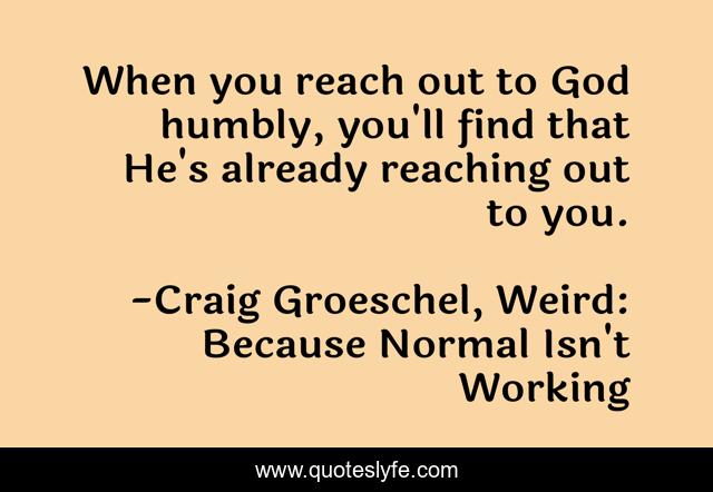 This page presents the quote "When you reach out to God humbly, you'll find that He's already reaching out to you.". Author of this quote is Craig Groeschel, Weird: Because Normal Isn't Working. This quote is about already, reaching, god, reach, you-ll, to, humbly, he-s, find,.