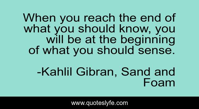 This page presents the quote "When you reach the end of what you should know, you will be at the beginning of what you should sense.". Author of this quote is Kahlil Gibran, Sand and Foam. This quote is about intuition, feeling, beginnings-and-endings, knowledge,.