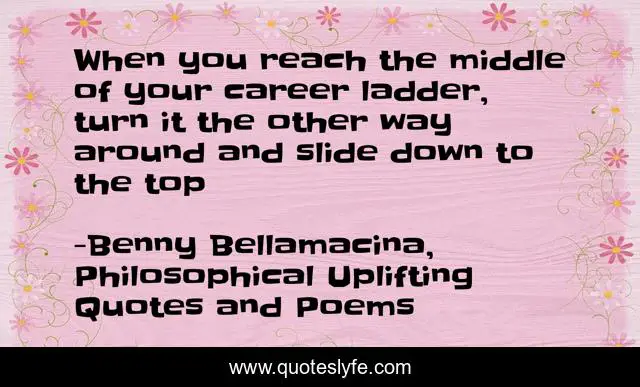This page presents the quote "When you reach the middle of your career ladder, turn it the other way around and slide down to the top". Author of this quote is Benny Bellamacina, Philosophical Uplifting Quotes and Poems. This quote is about career, life, philosophical, humour,.