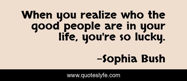 This page presents the quote "When you realize who the good people are in your life, you're so lucky.". Author of this quote is Sophia Bush. This quote is about life, people, good people,.