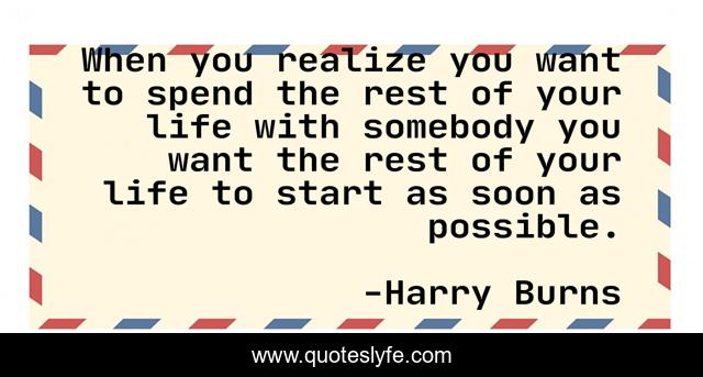 This page presents the quote "When you realize you want to spend the rest of your life with somebody you want the rest of your life to start as soon as possible.". Author of this quote is Harry Burns. .