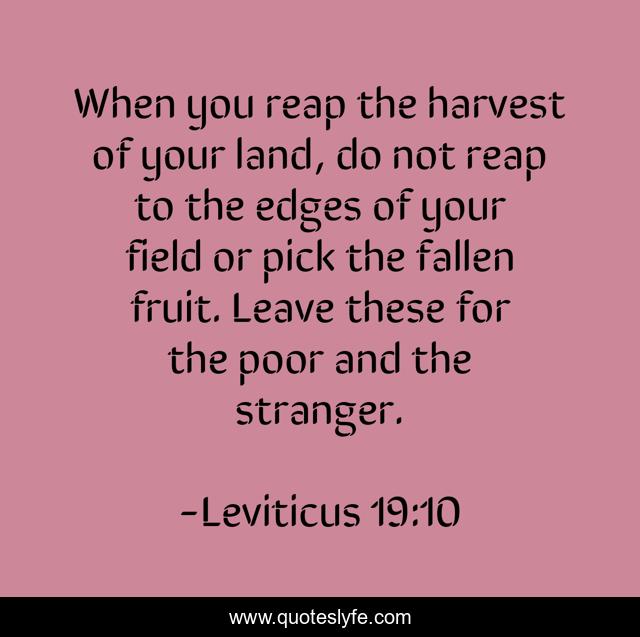 "Leviticus 19:10 Quotes." Quoteslyfe.com, 2025. Mon. 08 Dec. 2025. <https://www.quoteslyfe.com/quote/When-you-reap-the-harvest-of-your-135227>.