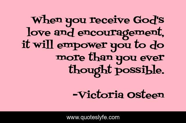 This page presents the quote "When you receive God's love and encouragement, it will empower you to do more than you ever thought possible.". Author of this quote is Victoria Osteen. This quote is about thought, love, encouragement, affection,.