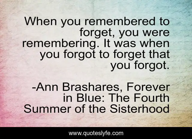 "Ann Brashares, Forever in Blue: The Fourth Summer of the Sisterhood Quotes." Quoteslyfe.com, 2025. Mon. 08 Dec. 2025. <https://www.quoteslyfe.com/quote/When-you-remembered-to-forget-you-were-132689>.
