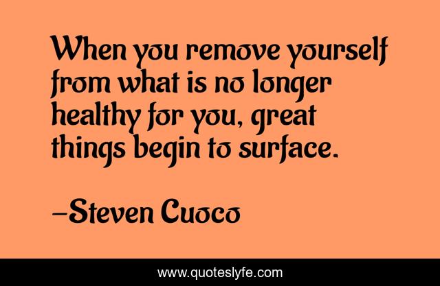 This page presents the quote "When you remove yourself from what is no longer healthy for you, great things begin to surface.". Author of this quote is Steven Cuoco. This quote is about brainy, trendsetters, quote-of-the-day, inspirational, quotes-about-life, enthusiasm, quotes-to-live-by,.