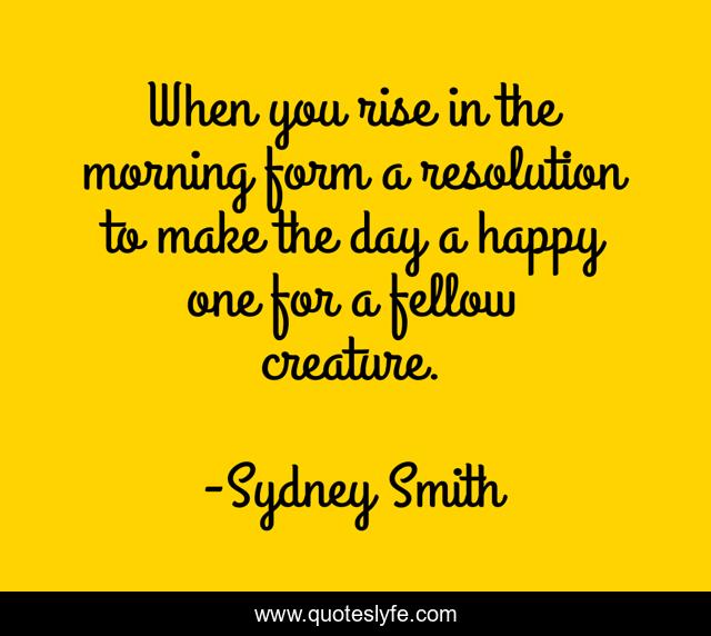 This page presents the quote "When you rise in the morning form a resolution to make the day a happy one for a fellow creature.". Author of this quote is Sydney Smith. .