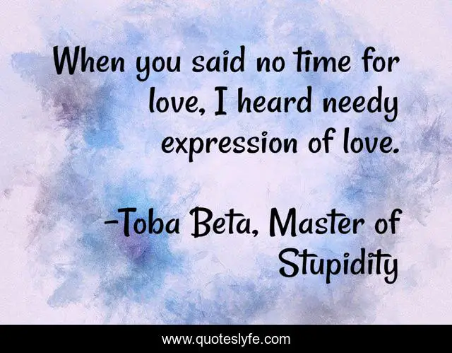 "Toba Beta, Master of Stupidity Quotes." Quoteslyfe.com, 2025. Sat. 06 Dec. 2025. <https://www.quoteslyfe.com/quote/When-you-said-no-time-for-love-240758>.