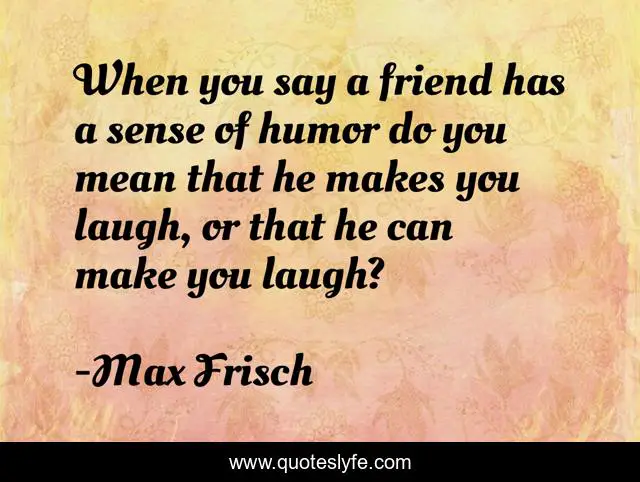 This page presents the quote "When you say a friend has a sense of humor do you mean that he makes you laugh, or that he can make you laugh?". Author of this quote is Max Frisch. This quote is about friend, laugh,.