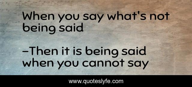 "Then it is being said when you cannot say Quotes." Quoteslyfe.com, 2025. Fri. 05 Dec. 2025. <https://www.quoteslyfe.com/quote/When-you-say-what-s-not-being-140435>.