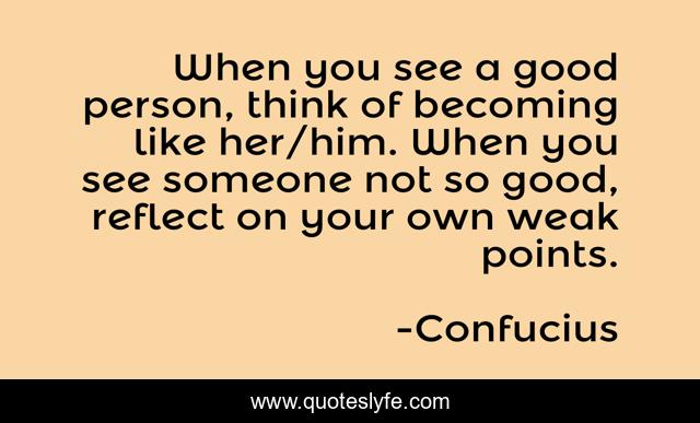 This page presents the quote "When you see a good person, think of becoming like her/him. When you see someone not so good, reflect on your own weak points.". Author of this quote is Confucius. This quote is about helpful, introspection, karma, inspirational, enthusiasm, self-improvement,.