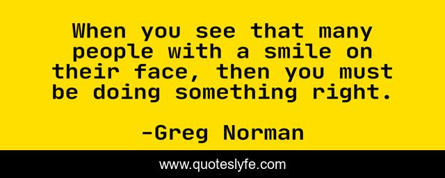 This page presents the quote "When you see that many people with a smile on their face, then you must be doing something right.". Author of this quote is Greg Norman. This quote is about see, people,.